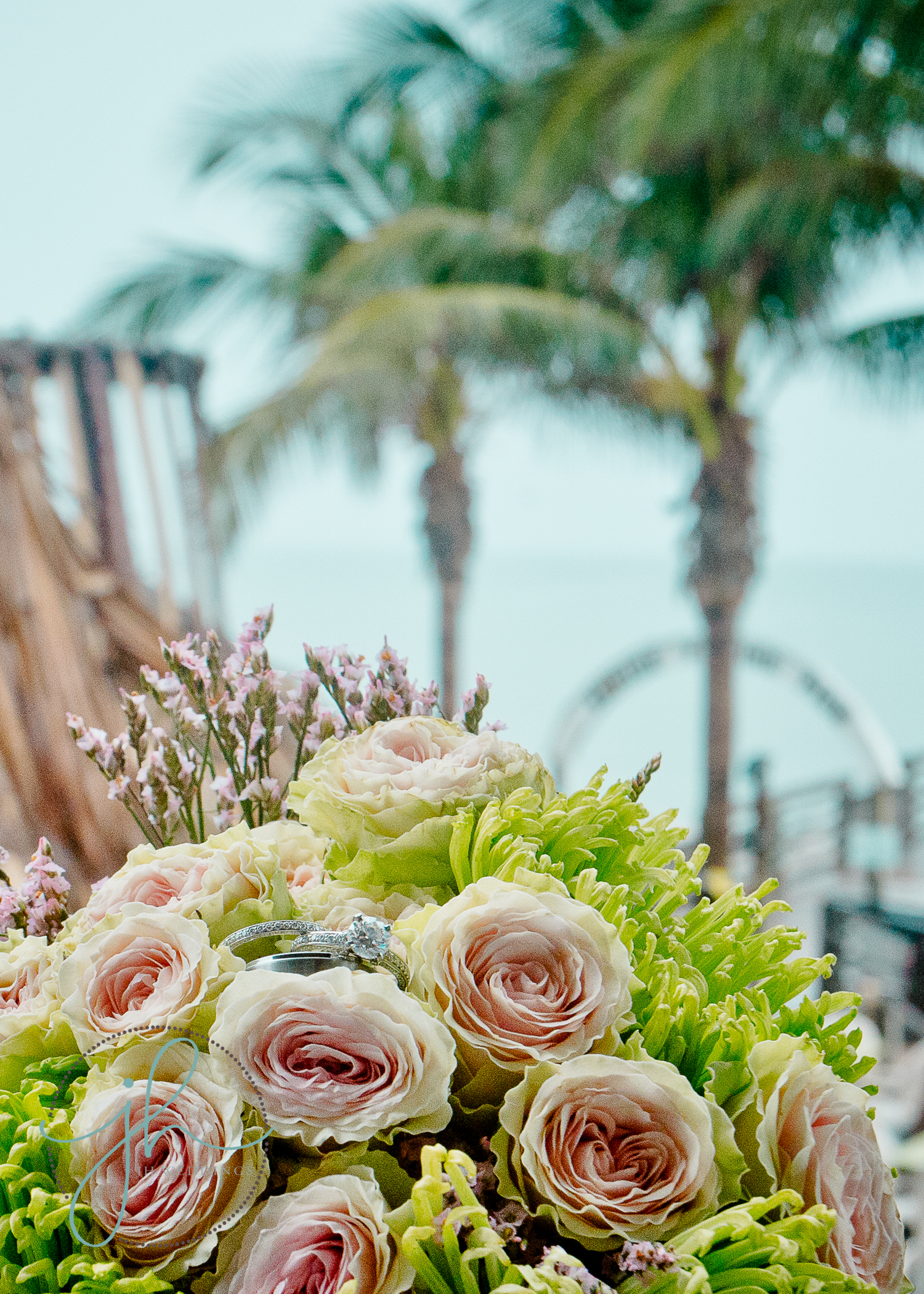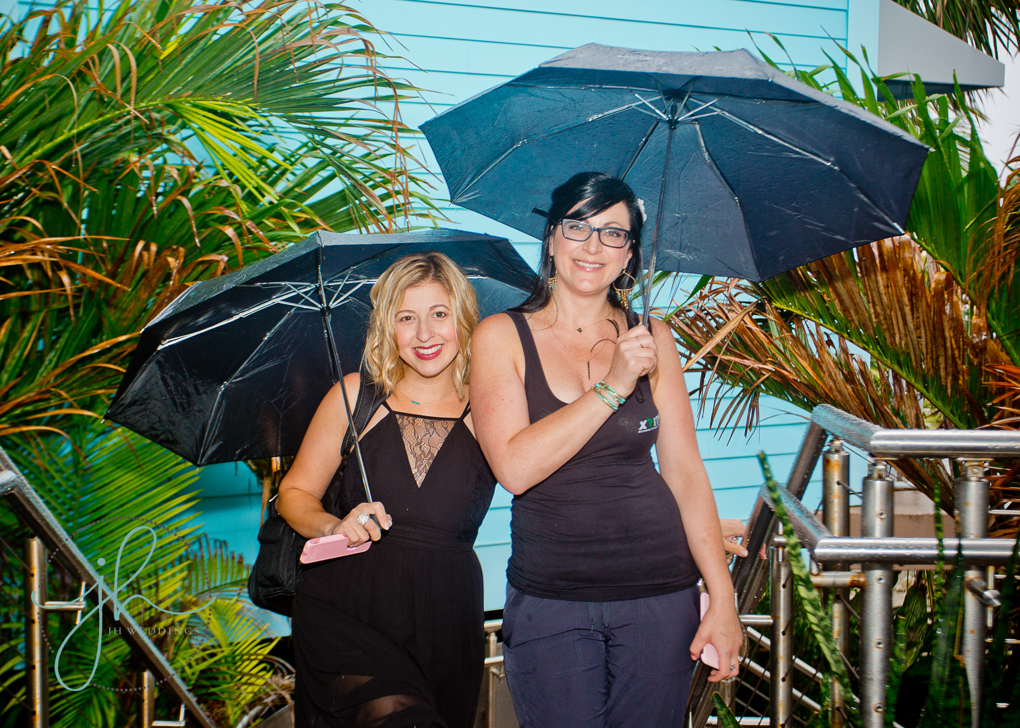 It was overcast and misty, but the couple and their guests grabbed umbrellas and smiled. Their vows took place on the outdoor deck at Fins, overlooking the Gulf. The clouds parted to give us a pretty sunset and an opportunity for some tropical outdoor shots.